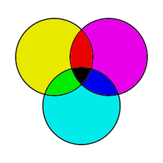 Dla subtraktywnego mieszania kolorów, jak mieszanie pigmentów lub barwników, zwykle wykorzystywane są Magenta, cyjan i żółty.